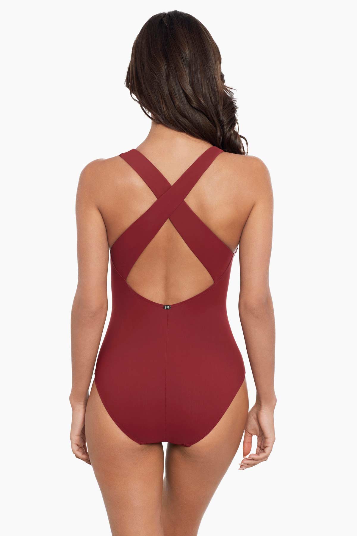 • Provides Light To Moderate Control • High Neck Maillot With Sash • Removable Soft Cup Bra • High Neckline • Fixed Straps • X-Style Back • Higher Leg Cut • Complete your look with a cover up • Model Is 5’11 And Wearing A Size 8 • 59% Nylon, 41% LYCRA® Spandex