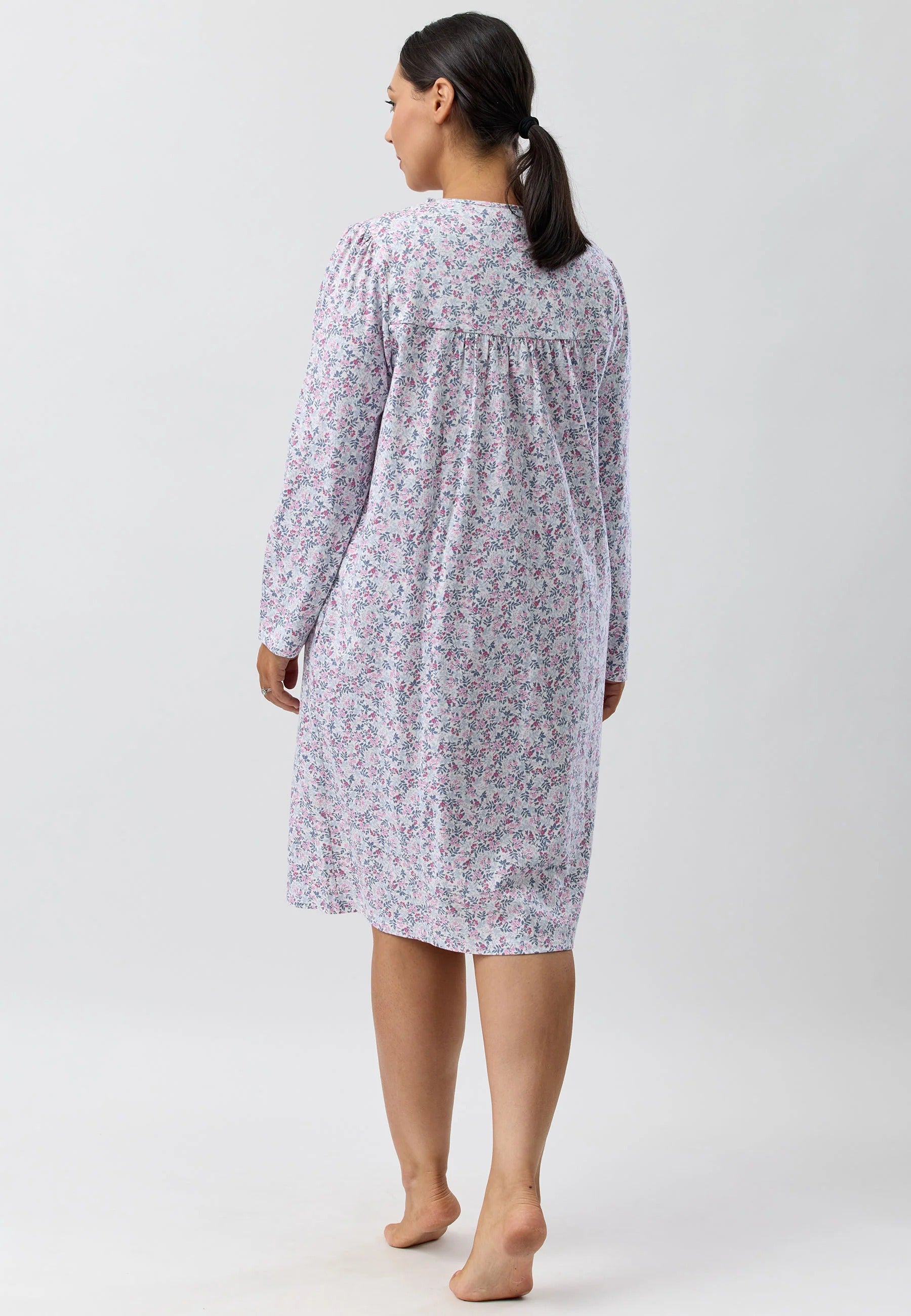 Indulge in ultimate comfort and style in our Flowerette Ruffle Nightie. Made of 100% cotton jersey, this nightie features a ditsy floral print and ruffle trim for a touch of femininity. The button opening adds a practical yet cute detail. Sweet dreams guaranteed.