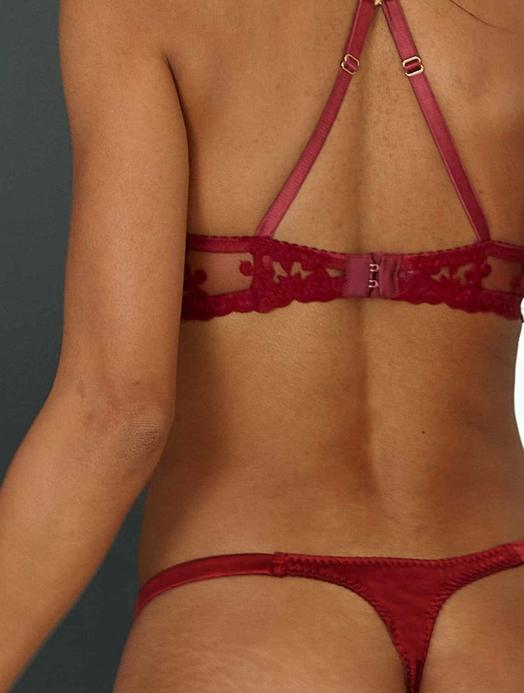 The Gisele Strap thong, timeless and sensual in design, features Fleur’s Onyx-inspired bespoke embroidery on sheer Italian tulle allowing an alluring glimpse of the skin beneath. This irresistibly comfortable thong features silk-encased elastic side straps and a full silk back providing a smooth silhouette and comfortable wear. 24-carat gold plated rings glisten at the front adding a contemporary touch of luxury. The gusset lining is made from 100% cotton for comfortable, everyday wear.