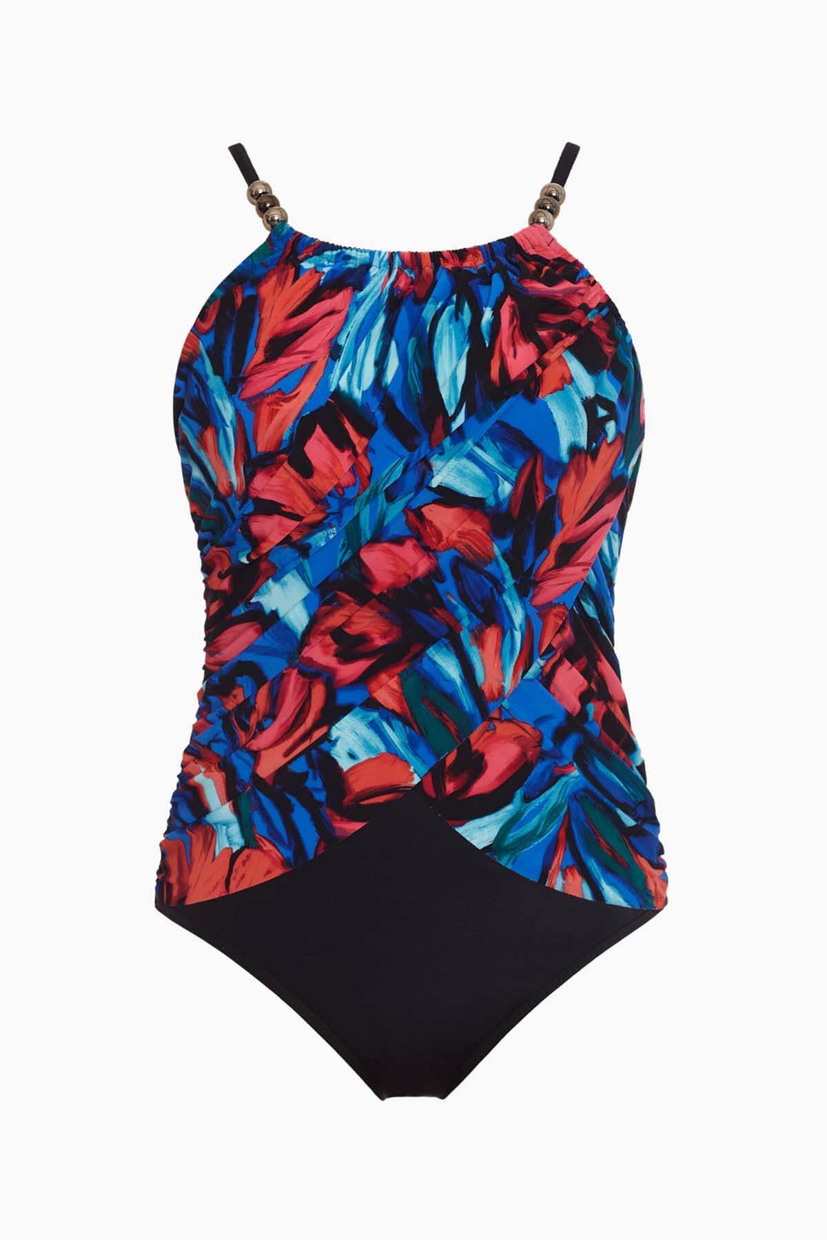 • Underwire Bra Support • Full Straight Back • High Neckline • Adjustable Straps • Provides Allover Slimming Control • Moderate Leg Cut • Body: 69% Nylon, 31% LYCRA® Spandex • Drape: 95% Polyester, 5% LYCRA® Spandex • Complete your look with a cover up