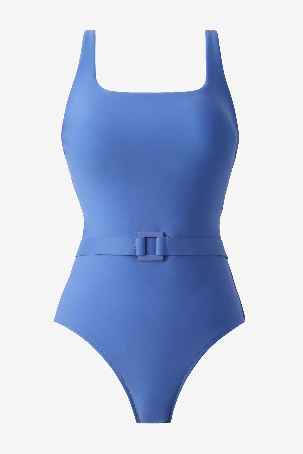 The Emi features a classic scoop neckline and underwire bra to flatter your bust. A removable stretch belt cinches the waist over sculpting fabric, completing this luxury swimwear look.