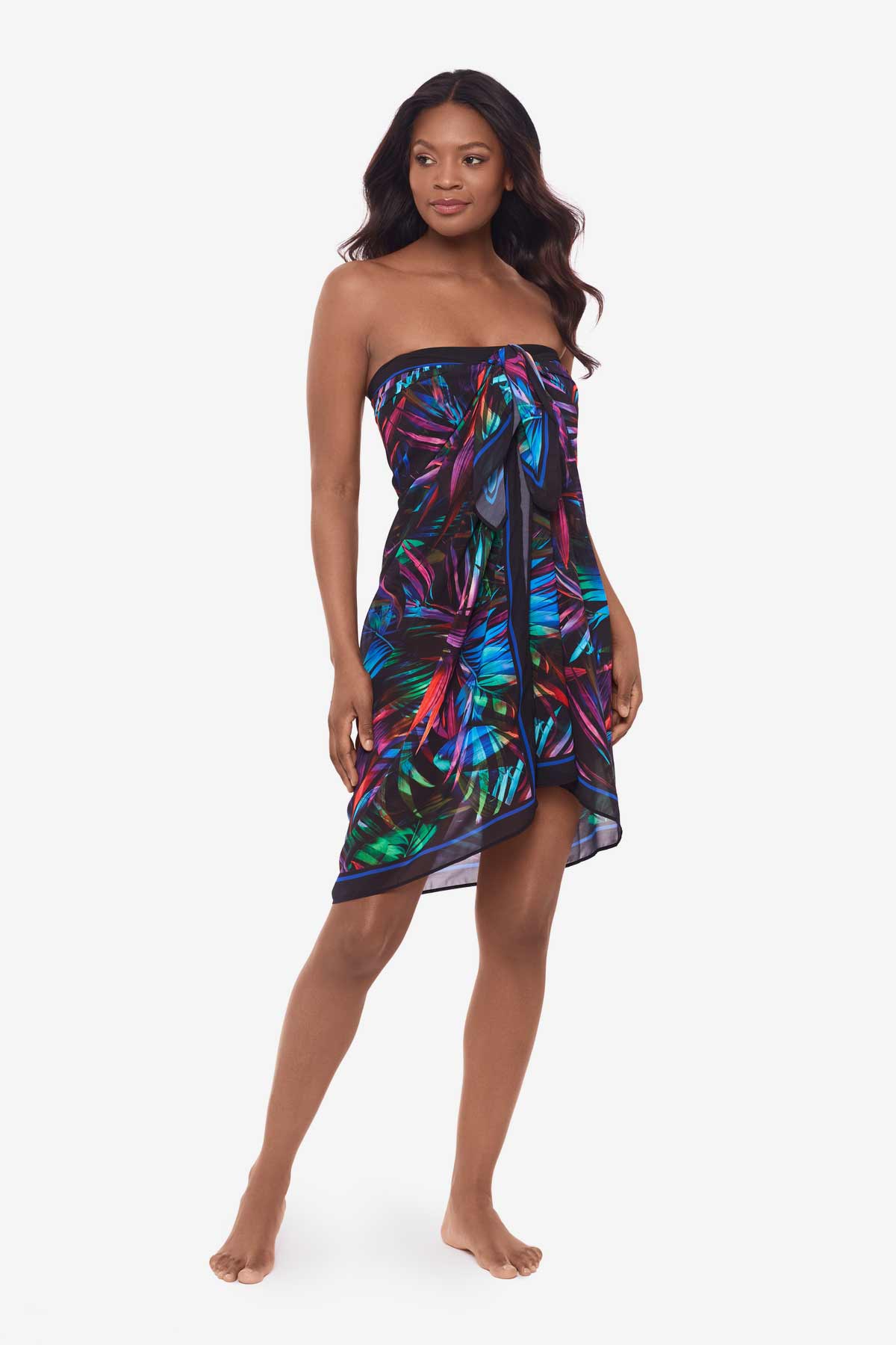 • Look 10 lbs. lighter in 10 seconds® with Miraclesuit • Swimwear cover up • Full coverage exploded print pareo • Palma paradiso print • Swimsuit sold separately• 100% Poly Georgette