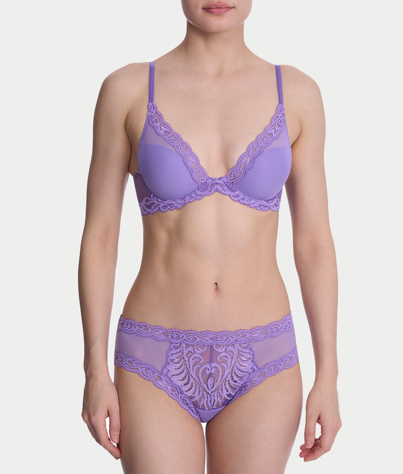 - Deep plunging underwire works great with low cut tops