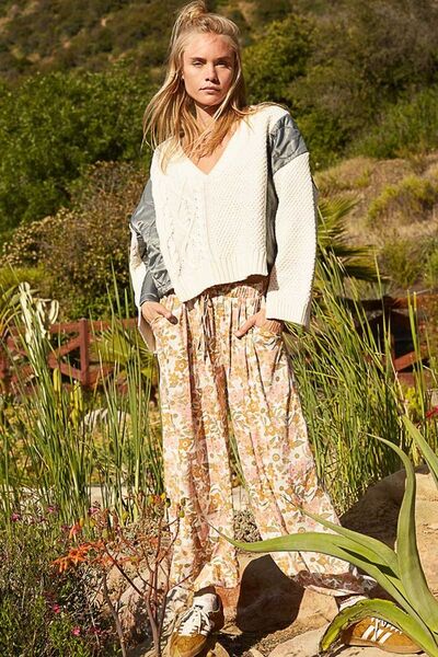 Stay effortlessly stylish and cozy in the POL Cable Knit Quilting Patch V-Neck Contrast Sweater—a perfect blend of classic knitwear and modern quilting details.