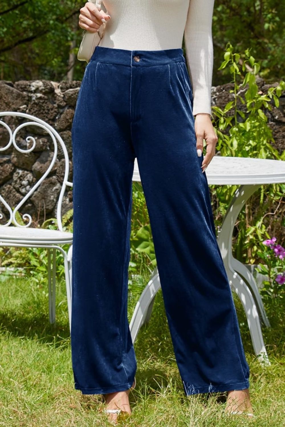 Step into comfort and style with the Velvet Wide Leg Pants with Pockets. These pants offer a luxurious feel with their soft velvet fabric while delivering a laid-back yet elegant look. Designed in a basic style with wide legs, these pants are as versatile as they are comfortable. The pockets add a functional touch, making them the perfect combination of fashion and practicality.