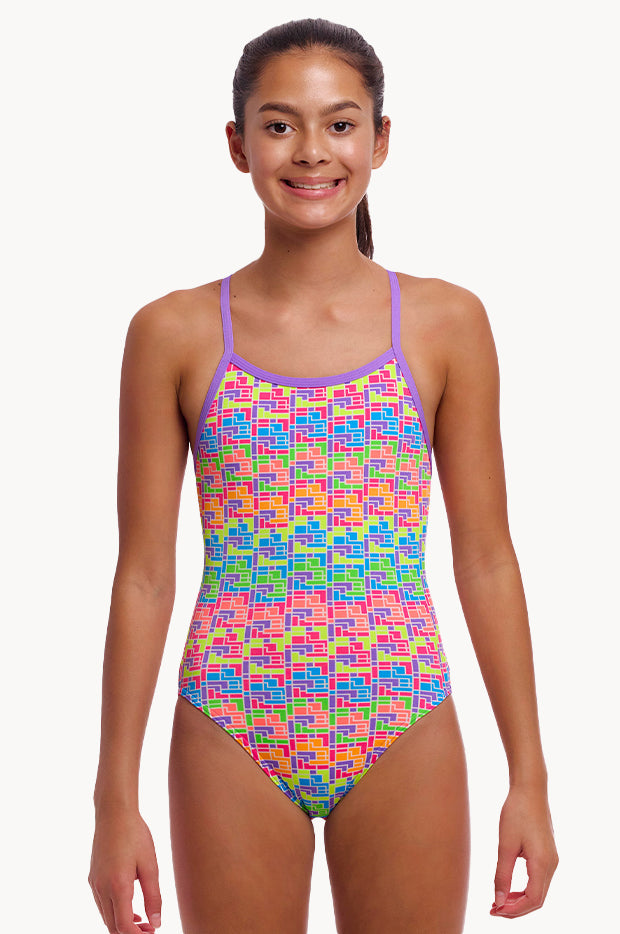 Girls Jig Jag Single Strap One Piece