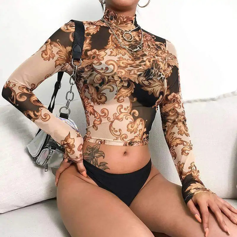 Perfee Lace Mock Neck Long Sleeve Bodysuit